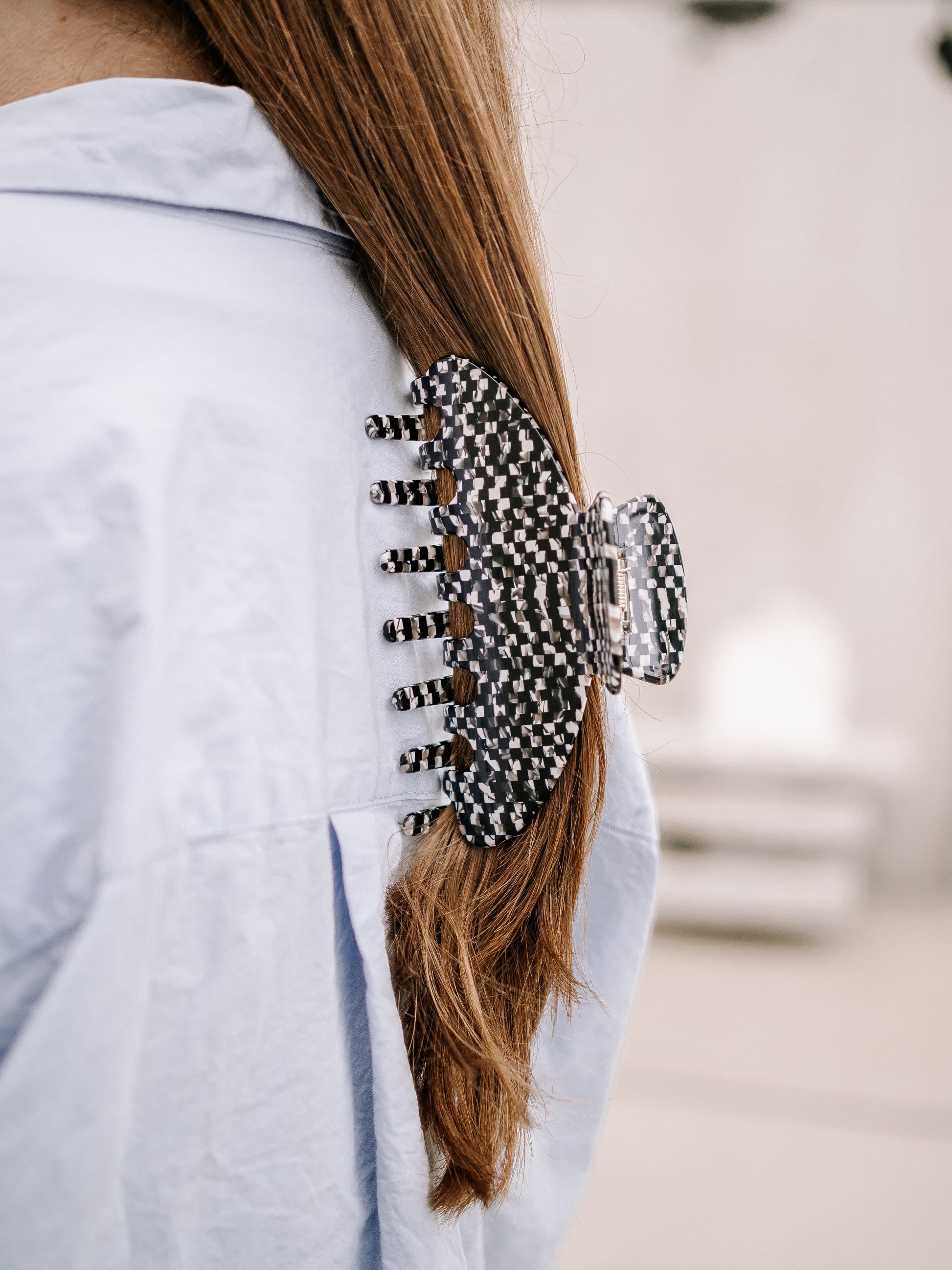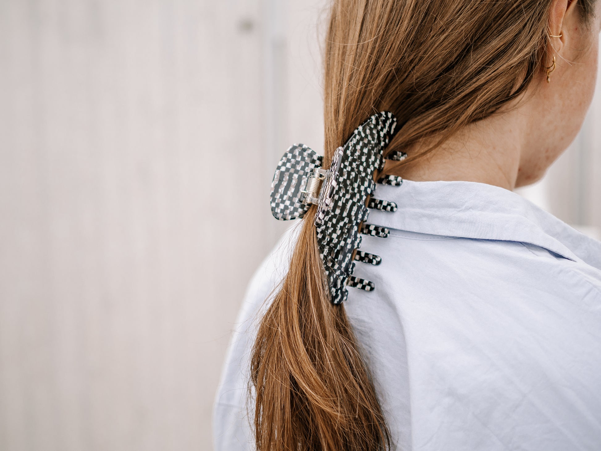 The Classic Clip is available in two sizes: 10 cm, ideal for shorter or finer hair, and 13 cm, designed for thicker or longer hair.